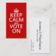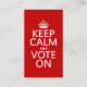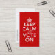 This reads Keep Calm and Vote On, in the style of the classic keep calm poster. It's a clean simple design, great for anyone campaigning for office, or supporting those who are standing in local and national elections.