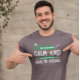 I give wanted to give this a 4 instead of a 5 because these Basic DARK T0shirts run unexpectedly SLIM or Narrow. Which is great if you do not have a potbelly, but I have a paunch. It isn't the shirt's fault that I've got a beer belly. The design and shirt itself is a quality cotton shirt. The color is more of a deep purple, but still a very pretty color. The Basic DARK T-shirts run a bit SLIMMER than the Basic Ts. The neck is a fraction narrower (or seems to be narrower) also. I'm a paunchy middle-aged woman and my neck is 12 inches (31cm) thick and the neckline fell about the same as in the photo of the man, and I had the desire to tug it a bit. So if you're a thick necked man or like loose shirts, be aware these are slimmer shirts. Once I get rid of my lockdown paunch it'll look great. The shirt washed well in cold water with no apparent bleeding. We don't have a dryer, so it hung dry. Did not shrink. Love the colors and the design. The design looks smaller on my shirt than it does on the model on-line. But still, it looks good on the shirt. The printing looks as it does on the model, just the size seems fractionally smaller. Washed garment in cold water, hung dry and design appeared unaffected.