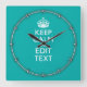 Keep Calm And Your Text on Accent Turquoise Square Wall Clock