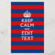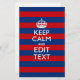 Have your personalised Keep Calm saying on this fine custom gift for yourself or for someone special on your list. Offered on a vibrant red and blue stripes decor. Humourous or whimsical try on your creative words on the two editable text fields you see on this product page. Remember to use CAPITAL letters for best results.