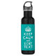 Festive colourful accent Keep Calm sayings on a custom water bottle gift.