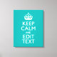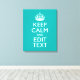 Keep Calm And Your Text on Peacock Turquoise Canvas Print