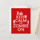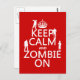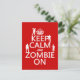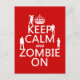 This design reads 'Keep Calm and Zombie On', with silhouettes of zombies standing on the words. It's a fun design perfect for everyone who loves zombies. Must have merchandise for the zombie apocalypse!