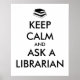 Make your own keep calm posters with this customisable template. It has a stack of books instead of the keep calm crown logo in black and words in black letters. It says Keep Calm and Ask A Librarian.