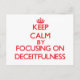 Use the search tool at my store to find other Deceitfulness merchandise. Keep Calm by focusing on Deceitfulness products available on tshirts,sweatshirts,kids shirts, infant onsies, stickers, magnets, and much more Deceitfulness clothing fully customisable to your specifications. If you like what you see, please link to my store (www.zazzle.com/shirtsforall) or email a friend..