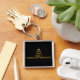 Elegant version of the "keep calm" call a psychologist in a key chain. Sharp black and gold design shown in a large key chain here. Crown is silver to stand out. Smaller size available. Personalise at no additional charge.