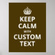 Make your own unique Keep Calm and Carry On quote with our easy to use poster template. Tap 'personalise' to edit the text to any phrase you like. Tap 'customise futher' to adjust the crown and font colour.