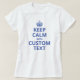Make your own unique Keep Calm and Carry On quote with our easy to use shirt template. Tap 'personalise' to edit the text to any phrase you like. Tap 'customise futher' to adjust the crown and font colour.