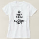 Make your own unique Keep Calm and Carry On quote with our easy to use shirt template. Tap 'personalise' to edit the text to any phrase you like. Tap 'customise futher' to adjust the crown and font colour.