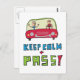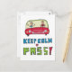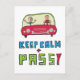 Driving instructor and pupil taking driving test in funny car cartoon.  The instructor is panicking but the new driver is calmly handling the car.  A good luck, keep calm message for anyone looking to take their test.