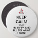 Our KEEP CALM Funny Fiftieth Birthday Button is a fun gift idea for friends turning 50! Available in a variety of sizes with volume discounts available!