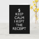Funny parody of british keep calm posters, this one saying "Keep Calm I Kept the Receipt "