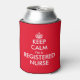 Keep calm i'm a registered nurse can coolers. Cute favour present. Make your own funny keep calm and carry on parody beverage holder design for nursing day, nr nurse, registered nurse, lpn, caregiver, nursing school graduation etc. Vintage keepcalmandcarryon typography with crown. Create your own keepcalm spoof with this template. Customisable background colour. Red and white.