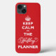 Fully customisable to any colour - 'Keep Calm I'm The Wedding Planner' funny and popular internet meme quote in white romantic curly calligraphy script and typography on a bright red background. A modern and trendy phone / ipad case design for wedding rehearsal / wedding party / bridal party / bachelorette party / wedding party and events.