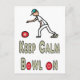 A player releases the bowling ball in a game of lawn bowls. Quiet concentration is required and a "Keep Calm and Bowl On" message helps in a humorous way. A fun design for lawn bowls fans and players.