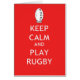 Ideal gift for rugby fans and players. Made in the style of the well known British WW2 "Keep Calm and Carry On" propaganda posters; the crown is replaced by a rugby ball and the slogan reads "Keep Calm and Play Rugby".