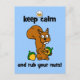 Keep calm and and rub your nuts! Hilarious squirrel keep calm tee shirts and gifts with squirrel holding a acorn nut. Funny keep calm shirts, t shirts and gear for Brits, expatriots and anyone with a British sense of humour