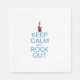 This design was inspired by the slogan 'Keep Calm and Carry On.' Our version is a guitar themed graphic with the text 'Keep Calm but Rock Out.' The colour of the motto's text is blue. A drawn image of a red electric guitar is located above the phrase.