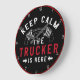 This bold wall clock humorously celebrates the arrival of the trucker. Against a black background with a striking red rim, it features a skeletal pair of hands gripping a steering wheel. The text "KEEP CALM THE TRUCKER IS HERE" is displayed in a mix of white and red lettering, accompanied by arrows, creating a fun and distinctive piece for any truck driver's home, garage, or workspace