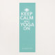 Enjoy your favourite yoga poses on this fabulous mat featuring white text "Keep Calm and Yoga On" with lotus flower on a solid mint green background. Add your name for a personal touch. Perfect for your exercise routine.