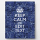 Keep Calm Your Text on Blue Digital Camouflage Plaque