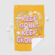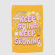 Retro style motivational "Keep going keep growing" text design with mushroom, flowers, stars, rainbow, clouds and sun decoration
