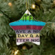 A quality product. Very nicely printed which wraps around the edge with a plain back. Not at all to heavy to fall off that tree branch. The printing seems crisp and robust enough to last for many a Christmas.