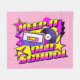 Colourful retro style vinyl record and cassette design with "Keep it old school " text decoration, geometric shapes, triangles, stars and rounded shapes