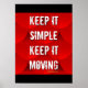 Our Keep It Simple Keep It Moving 20x28 Motivational Poster is the perfect reminder to avoid getting stuck, just keep it simple and --more importantly-- keep it moving! Design features text in white against a red stylised background trimmed in black. Available in a variety of sizes with framing option available. Perfect for the classroom or workplace. Gift it or get one for yourself!
