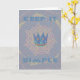 The central motif showcases a symbolic blue and gold crown, representing focus and inner royalty. This crown is set against a dynamic, geometric background: a soft lavender/light blue grid pattern overlaid with a radiating starburst in muted purples and creams. The powerful message "KEEP IT SIMPLE" boldly frames the top and bottom of the design in a coordinating light blue. This elegant combination of clean geometry and motivational symbolism in a sophisticated, lighter shade is ideal for anyone seeking clarity and a mindful approach to their daily life with a calm, understated aesthetic.