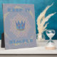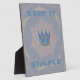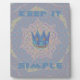 The central motif showcases a symbolic blue and gold crown, representing focus and inner royalty. This crown is set against a dynamic, geometric background: a soft lavender/light blue grid pattern overlaid with a radiating starburst in muted purples and creams. The powerful message "KEEP IT SIMPLE" boldly frames the top and bottom of the design in a coordinating light blue. This elegant combination of clean geometry and motivational symbolism in a sophisticated, lighter shade is ideal for anyone seeking clarity and a mindful approach to their daily life with a calm, understated aesthetic.