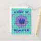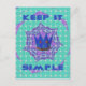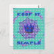 The central motif showcases a symbolic blue and gold crown, representing focus and inner royalty. This crown is set against a dynamic, geometric background: a teal/mint grid pattern overlaid with a purple and white radiating starburst. The powerful message "KEEP IT SIMPLE" boldly frames the top and bottom of the design. This combination of clean geometry and motivational symbolism is ideal for anyone seeking clarity and a mindful approach to their daily life.