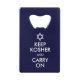 A parody of the popular "KEEP CALM AND CARRY ON" theme. A Star of David (Magen David) replaces the familiar crown accompanied by text reading, "KEEP KOSHER AND CARRY ON," referring to kashrut, the Jewish dietary laws.