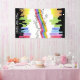 Vector illustration of a musical background with silhouette of people dancing. Colourful drawing of a party poster.