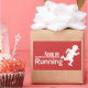 White text reads "Keep on Running" with a silhouette of a running man with a cap. Text is treated with mild grunge. Simple but great design for joggers, marathon runners etc to just focus on running.