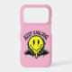 Vibrant yellow melting smiley with bold black outline and graffiti charm. Streetwear vibe for tees and hoodies; eye-catching contrast and positive message.