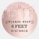 Keep your distance rose gold pink glitter drips classic round sticker