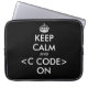 Keep calm and c code on laptop sleeve | Geek humor. Keep calm and c++ on t-shirt | Computer programmer code tee. Create your own funny Keep calm and carry on parody. For example with these internet programming languages: html php java javascript perl sql. Customize background colors and text the way you want it.