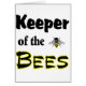 honey bee with white black and yellow design saying "keeper of the bees"