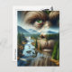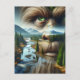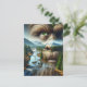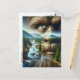 An awesome Sasquatch illustration with Bigfoot, mountains, moose, a river and river postcard to keep in touch with friends and family while you are out squatching!