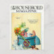 1929 magazine cover with little baby sitting in a hat box wearing a colourful woman's hat while a puppy pulls on the hat's ribbon