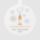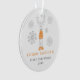 Modern keepsake baby's first Christmas personalise ornament with baby's name, your favourite photo and line art of cosy reindeer wearing Dusty orange sweater and boots.