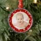 Personalise this festive red with snowflake pattern Christmas frame ornament design with your favourite photo and custom text.