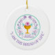 The finish of the ceramic decoration exceeded my expectations and was glossy and gave a nice tinkling chink as they touched each other. A great finish and generously sized ornament.