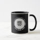 A black and white mug to personalise with your own photo (or your pet, logo, someone special or any other image / circular cut), name and curved text