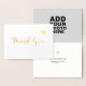 A nice 'love and thanks' design... front of the card: the words 'Thank You' in a gold foil script font; inside-front: your special photo; inside-back: custom words; back; a small gold-foil-heart