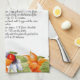 Keepsake Recipe Template Floral Gift Kitchen towel trimmed with bright orange spring flowers.