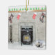 Keeshond Christmas Puppy Dog by Fireplace Painting Ceramic Ornament