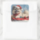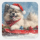 Keeshond Dog in Sledge Let it Snow Christmas Square Sticker
