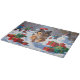 Keeshond Dog Running in Snow with Christmas Hat Cutting Board